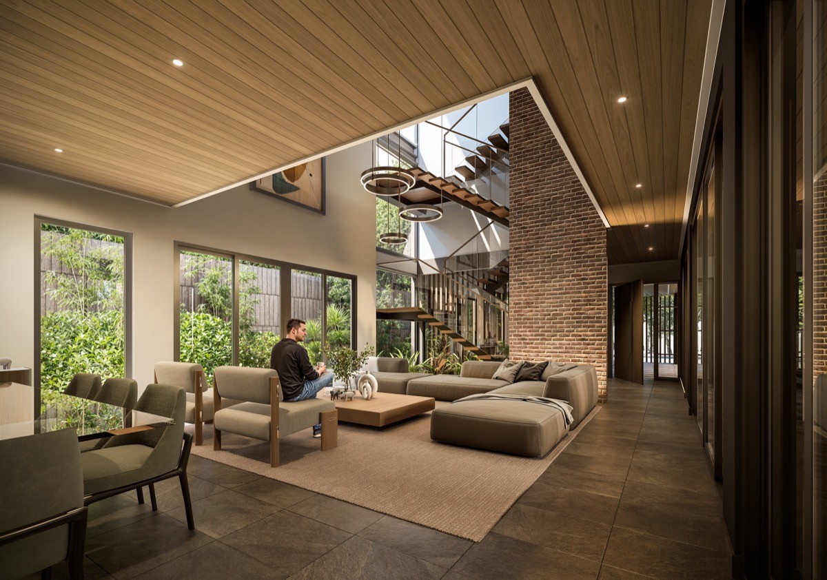 La estrategia se basa en hacer que el edificio “respire”. El aire entra por el patio, asciende de forma natural y evita la acumulación de calor o humedad en los corredores o en los espacios de servicio. Este enfoque mejora el confort interior sin depender exclusivamente de sistemas mecánicos, alineándose con principios de diseño responsable.