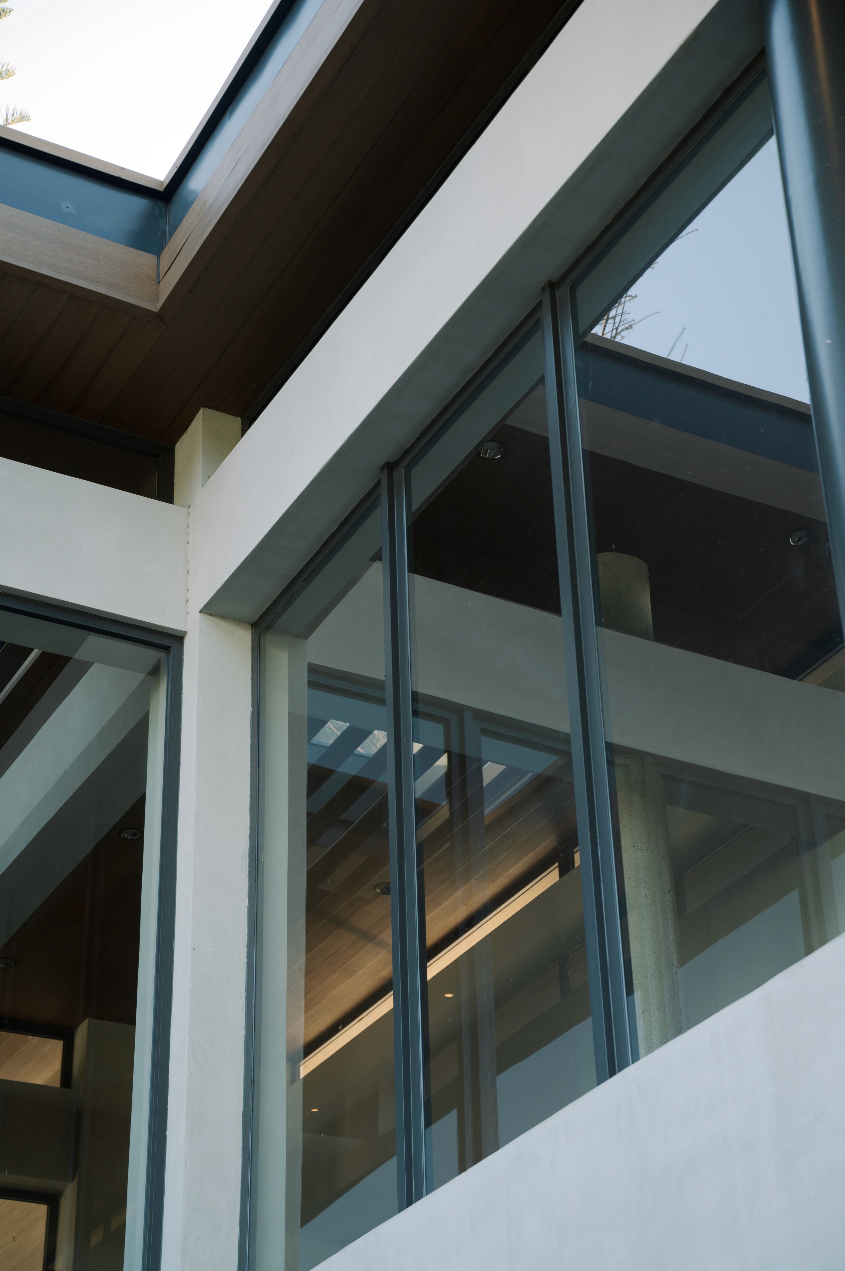 El vidrio se emplea como mediador entre interior y exterior. Las grandes superficies acristaladas permiten que la luz natural penetre profundamente y que la vegetación se convierta en parte del paisaje interior. Así, la transparencia no es solo funcional: representa la intención de disolver los límites entre hábitat y naturaleza.
