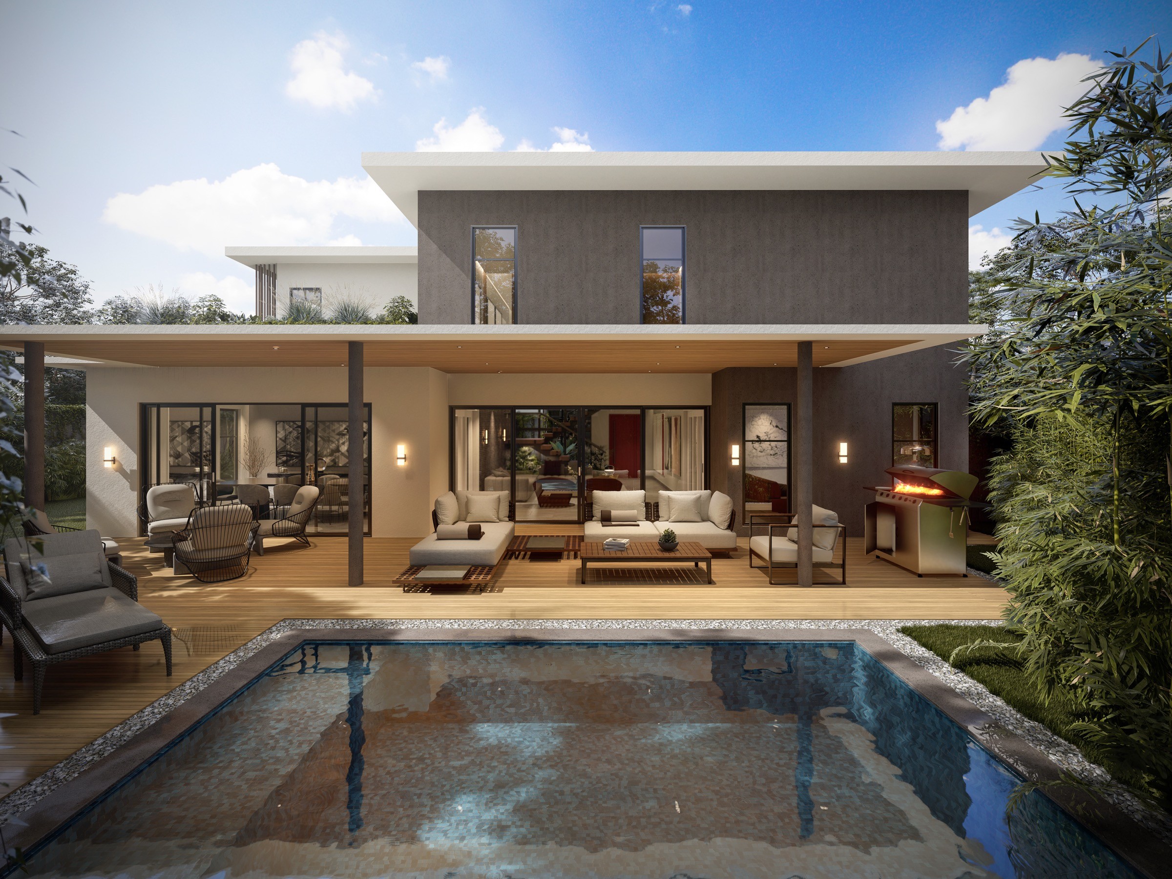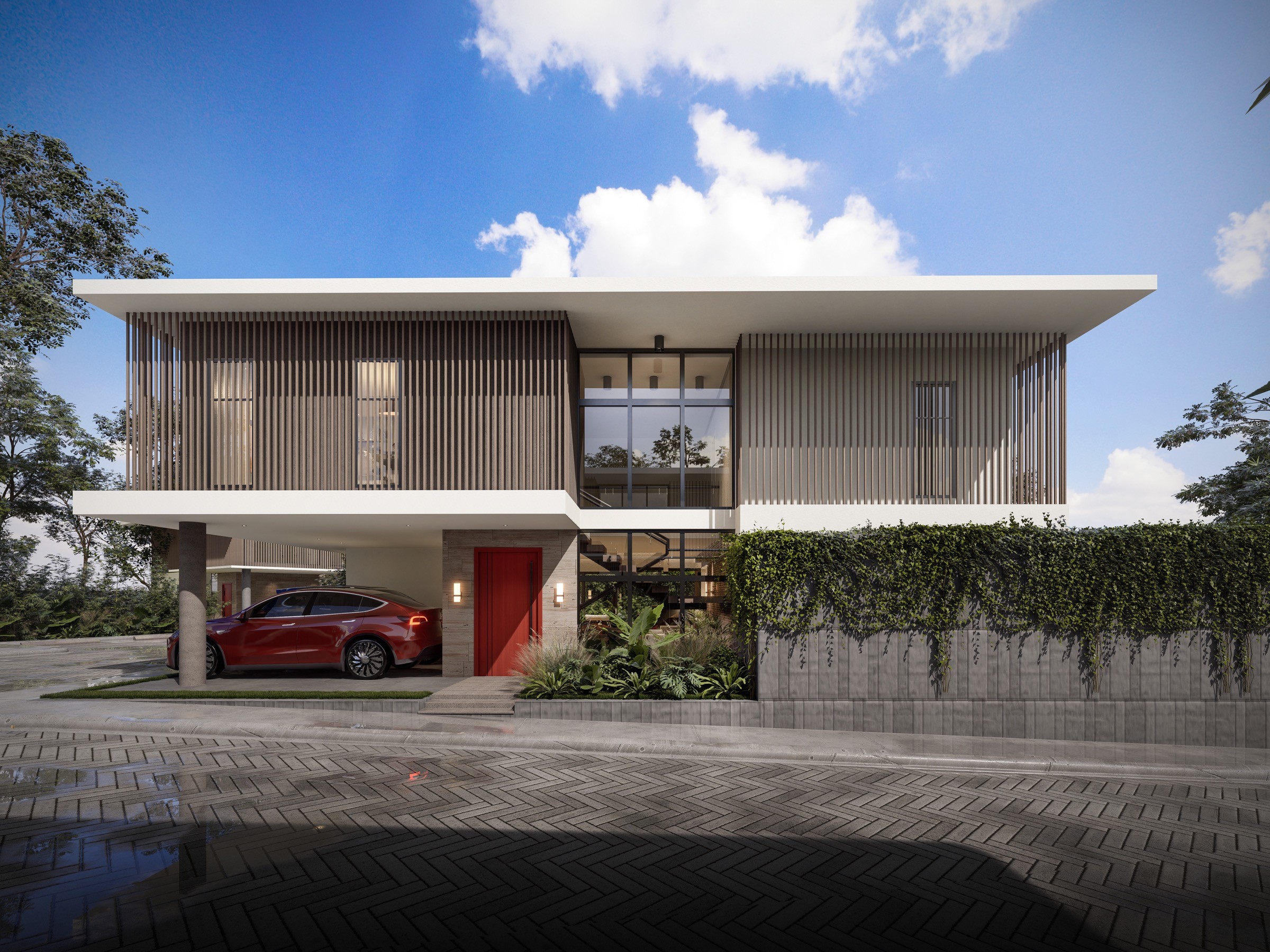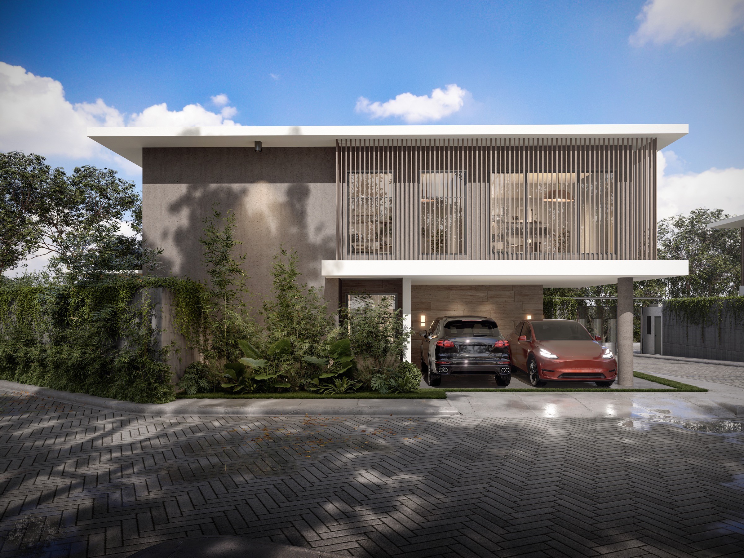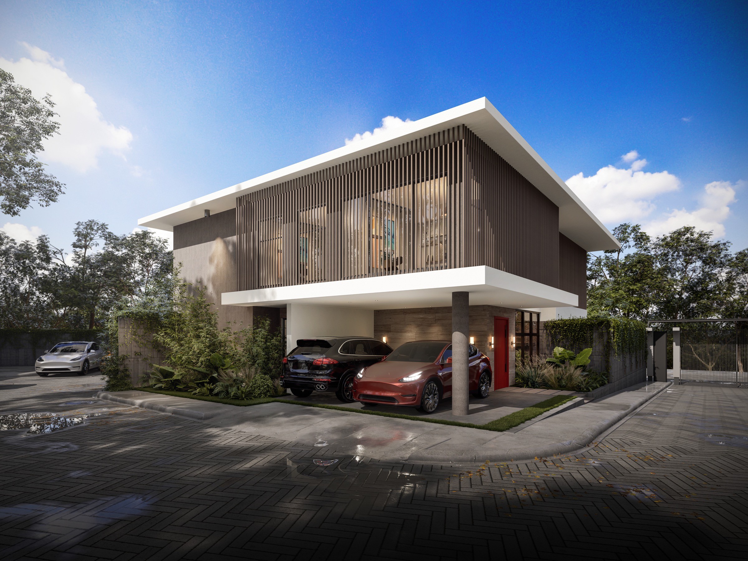 El proyecto se desarrolla en una esquina estratégica, justo donde la calle culmina en una vía sin salida y se encuentra con una avenida importante del sector. Esta situación urbana le otorga presencia, privacidad y una circulación vehicular más calmada para los residentes.