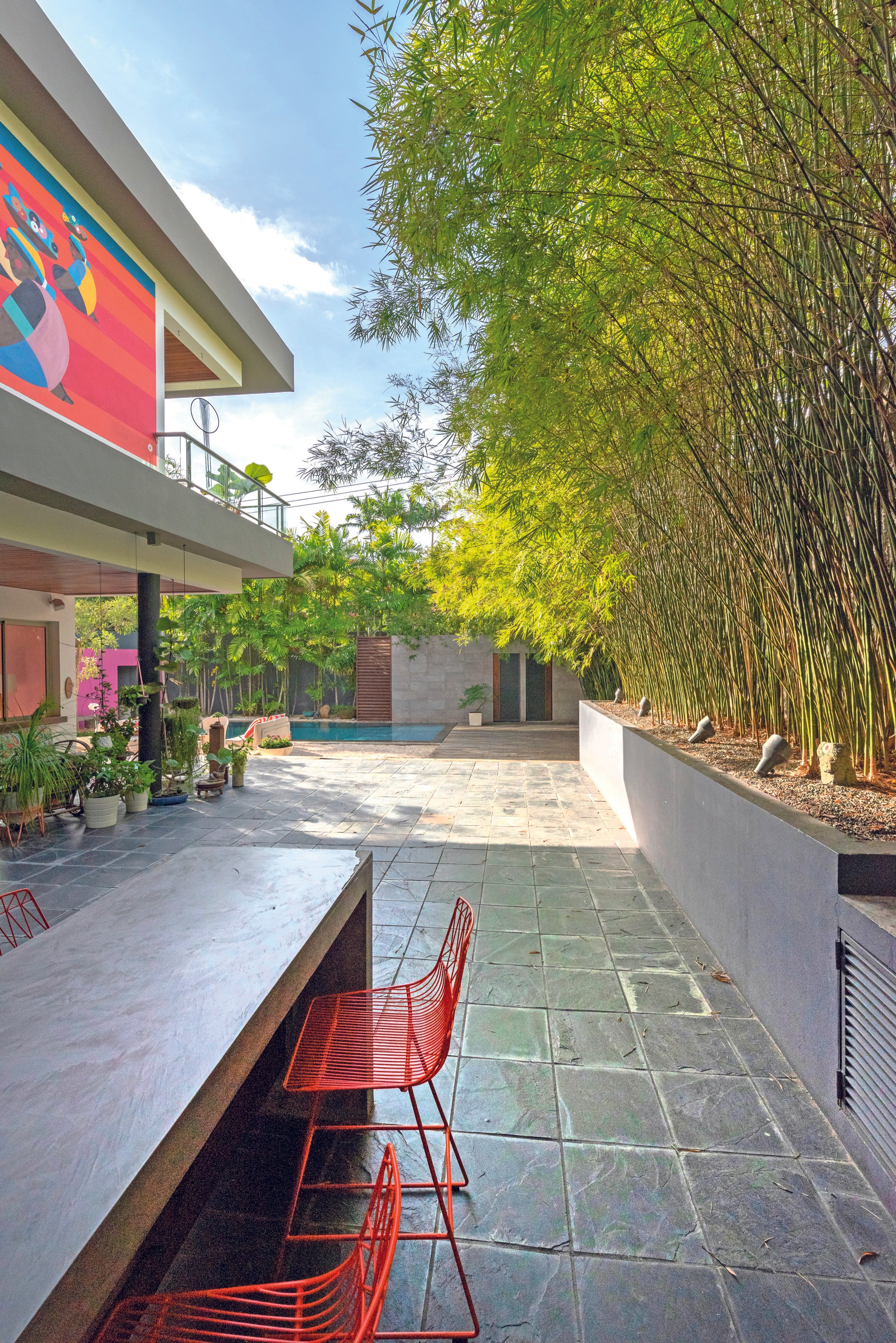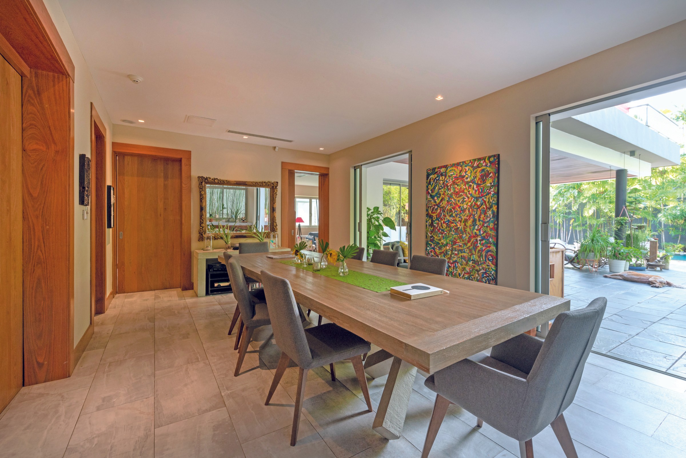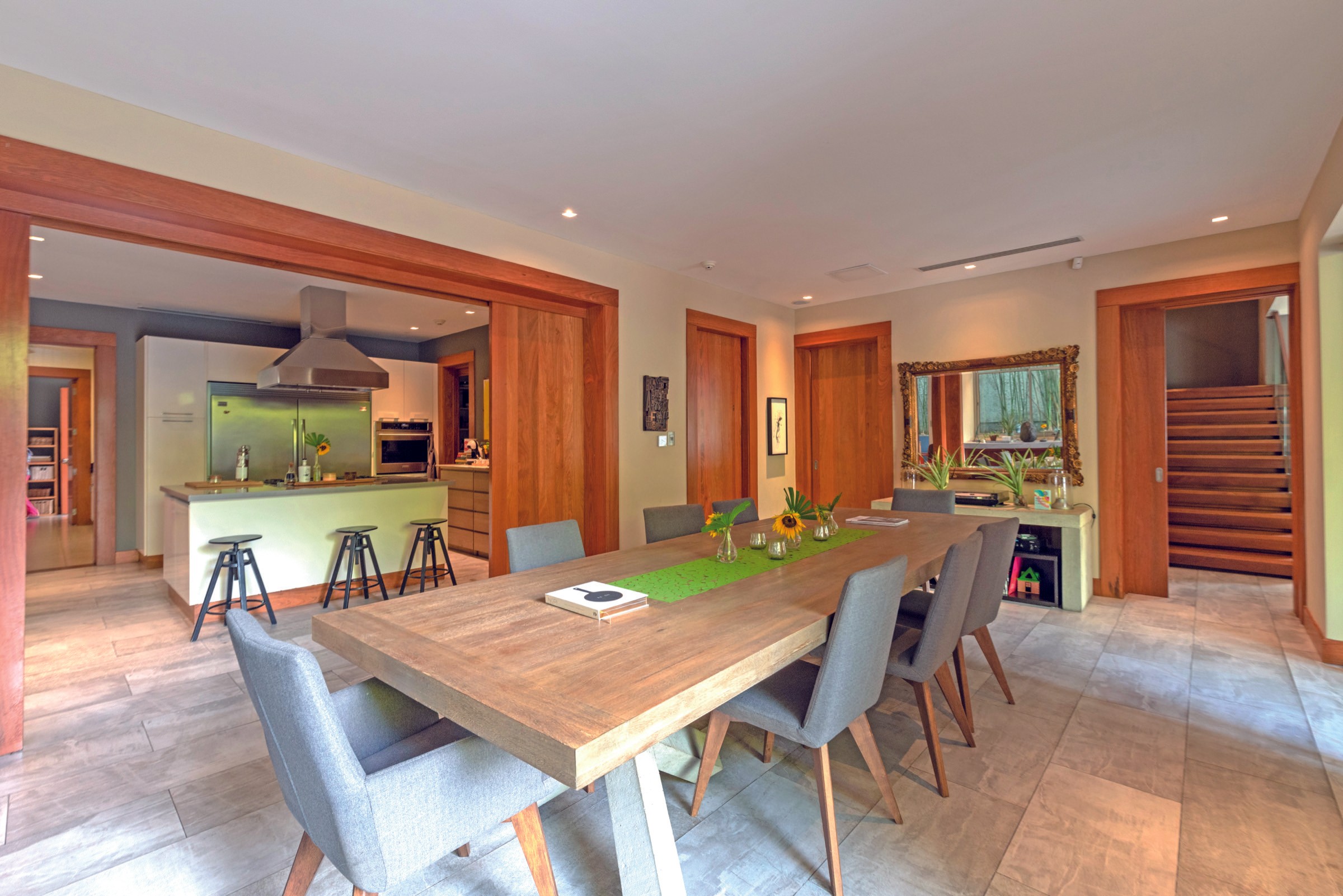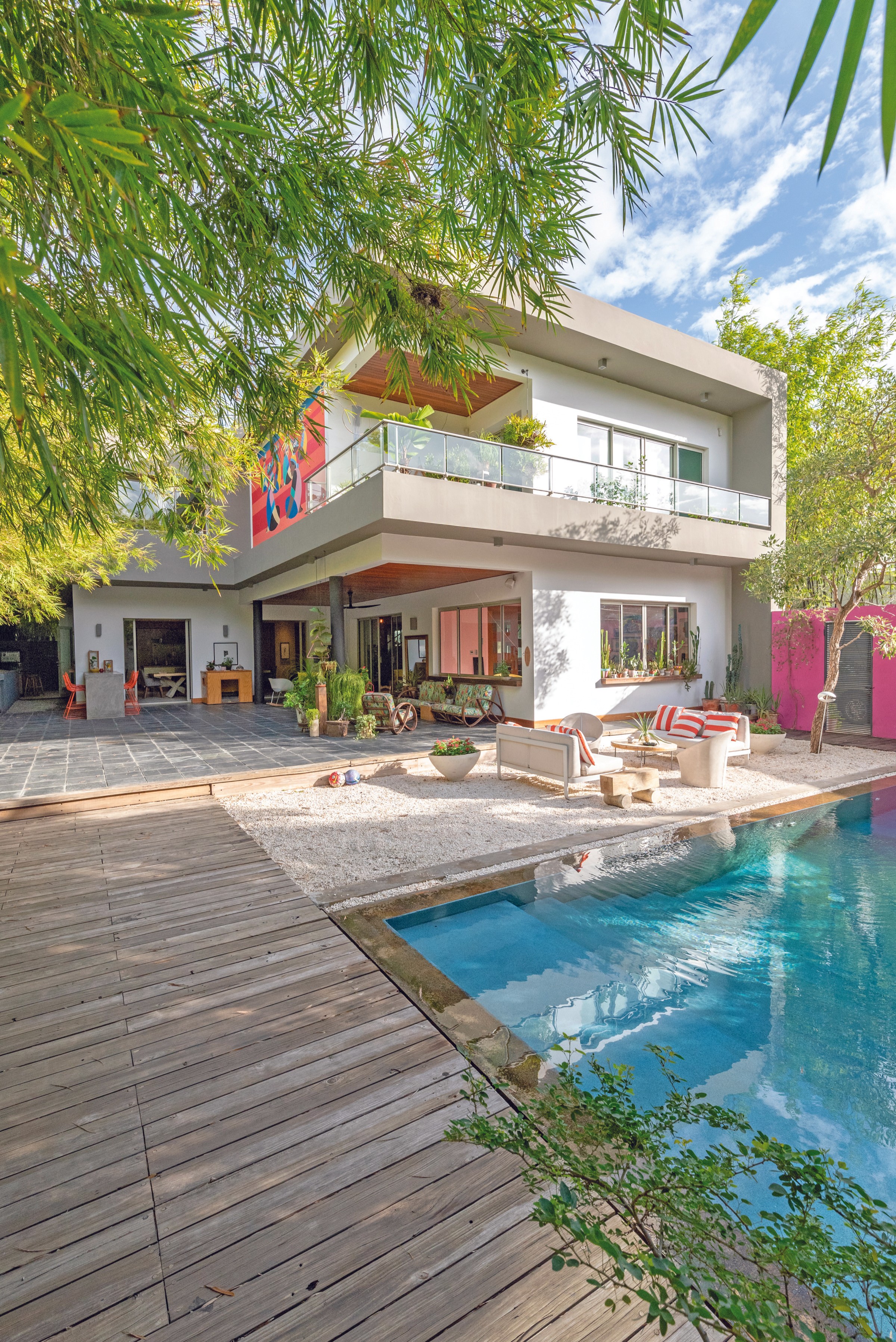 Las áreas exteriores —patios, terrazas cubiertas, corredores y zonas de piscina— no son elementos decorativos, sino lugares de encuentro. Espacios pensados para que los nietos entren y salgan con naturalidad, para que las visitas no requieran invitación formal, y para que la vida familiar se dé de manera orgánica, sin barreras innecesarias.